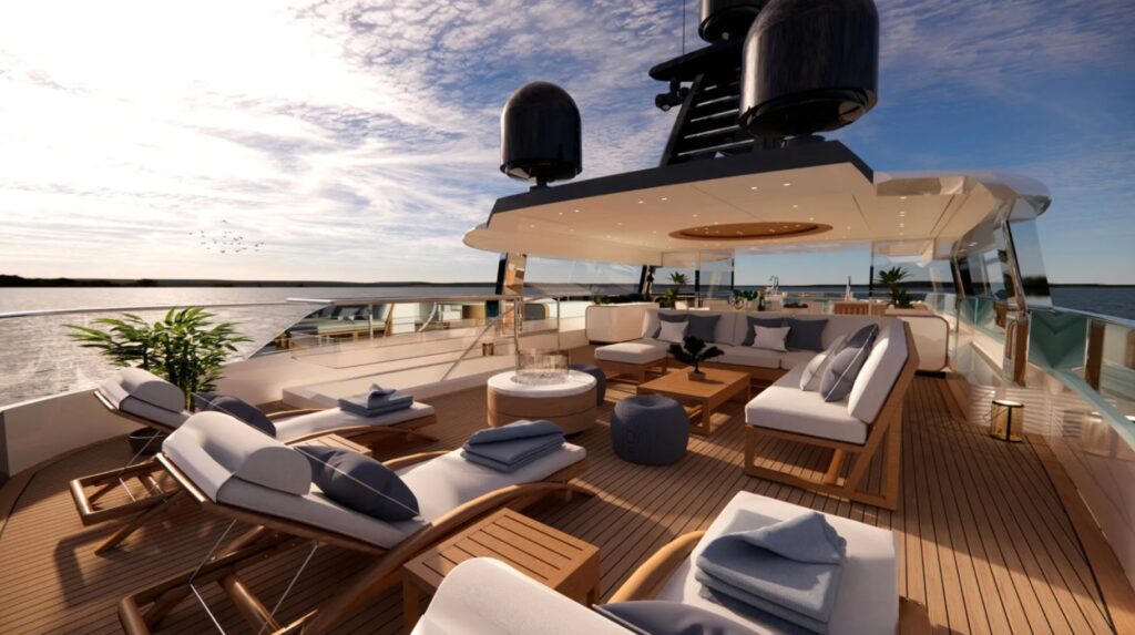The exterior design of the NL 50 Plus complements its interior, with sleek lines and a modern profile that exudes sophistication. The deck areas are designed for both relaxation and entertainment, with spaces that can be customized to suit different occasions. This attention to detail in both the interior and exterior design highlights Mengi Yay’s commitment to delivering yachts that are at the forefront of design and technology.
